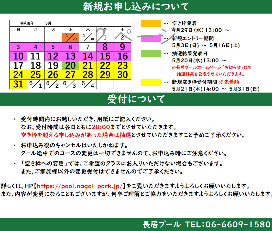 5月20日(水)13:00 ※長居プールホームページ「お知らせ」にて抽選結果を公表させていただきます。